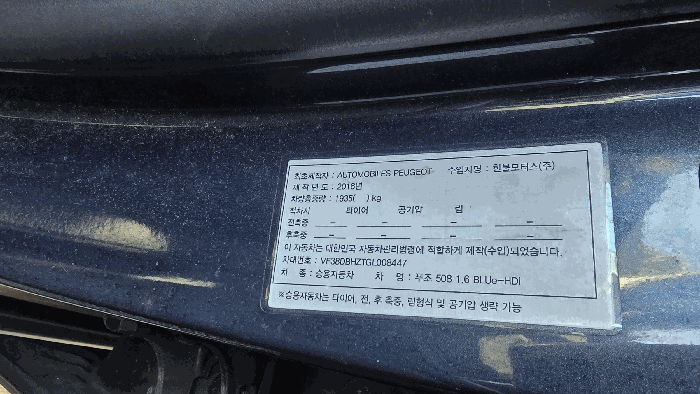 | 차대번호 | VF38DBHZTGL008447 | ||