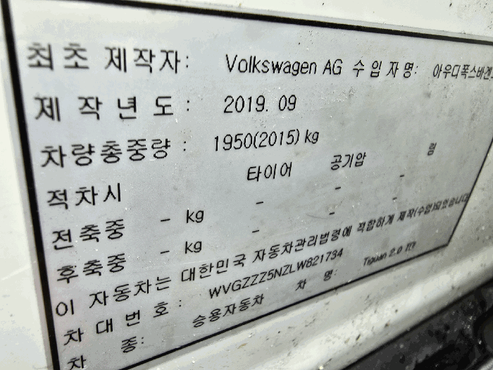 | 차대번호 | WVGZZZ5NZLW821734 | ||