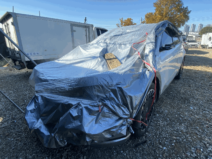 비고1. 차량 전면부 전체 파손으로 인하여 전기장치가 작동되지 않아 차량의 계기판 상 주행거리 확인이 곤란한 상태