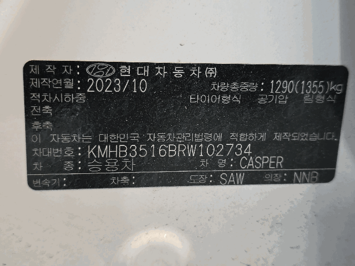 | 제조사 | 현대 | 차량명 | 캐스퍼(CASPER) |