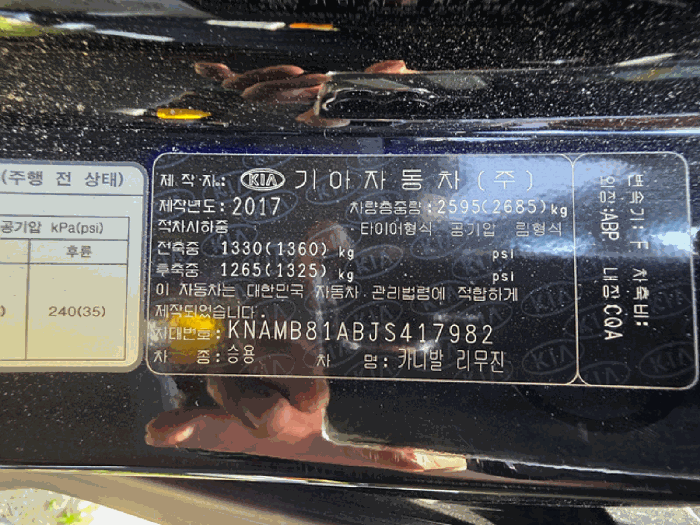 | 차대번호 | KNAMB81ABJS417982 | ||
