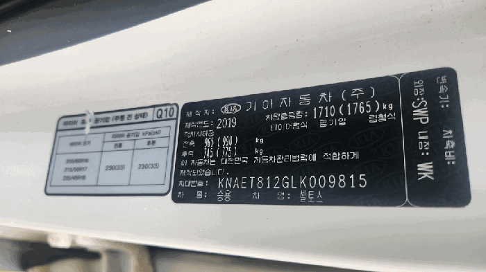 | 차대번호 | KNAET812GLK009815 | ||