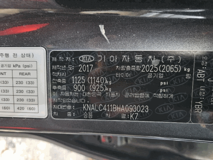 | 차대번호 | KNALC411BHA093023 | ||