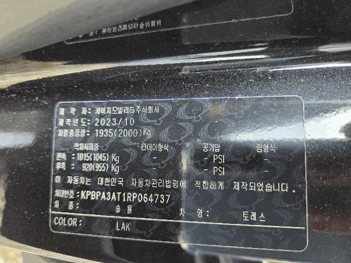 | 차대번호 | KPBPA3AT1RP064737 | ||