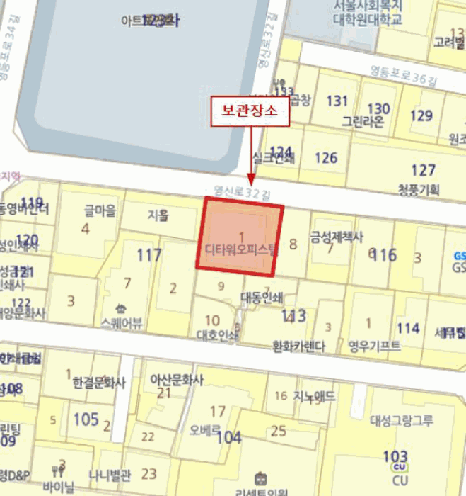 | 보관장소 | 서울 영등포구 영등포동4가 117-1(서울 영등포구 영신로32길 16, 디타워 내) | ||