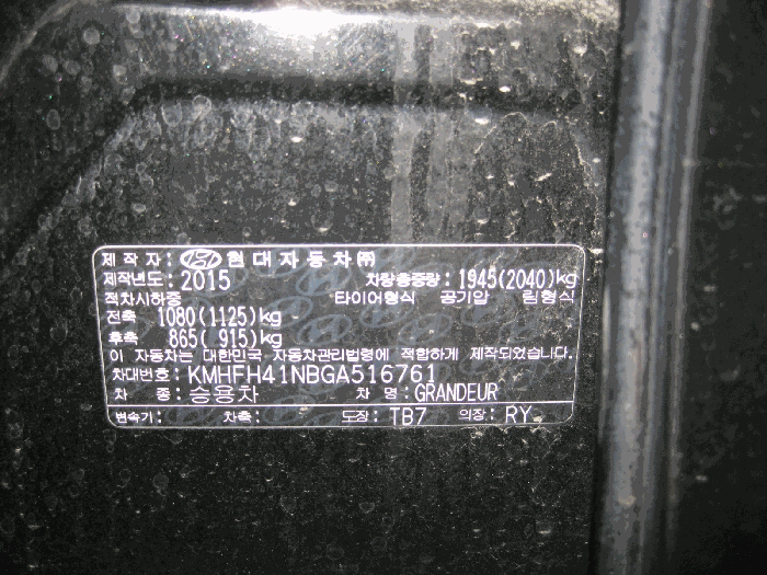 | 제조사 | 현대 | 차량명 | 그랜저(GRANDEUR) |