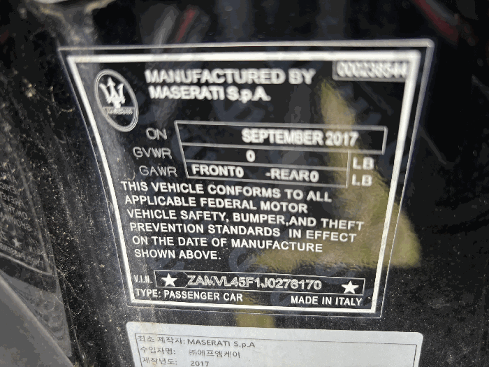 | 차대번호 | ZAMVL45F1J0276170 | ||