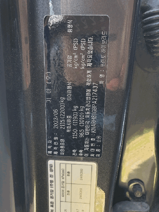 | 차대번호 | KNARH81GBPA217437 | ||