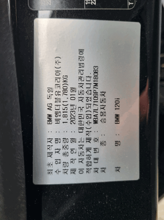 | 제조사 | BMW | 차량명 | BMW 120i |