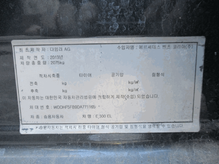 | 차대번호 | WDDHF5FB9DA771165 | ||