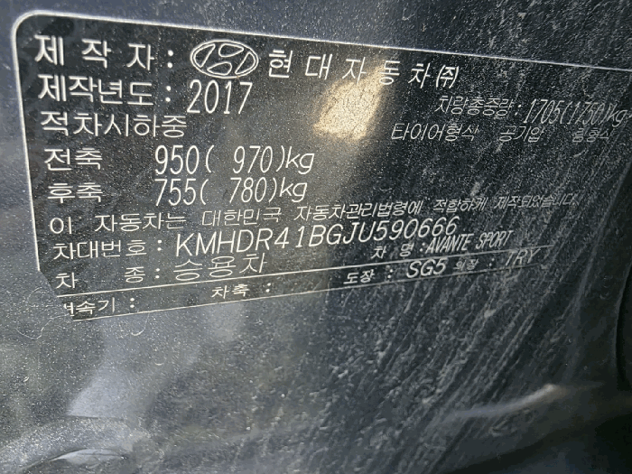 | 차대번호 | KMHDR41BGJU590666 | ||