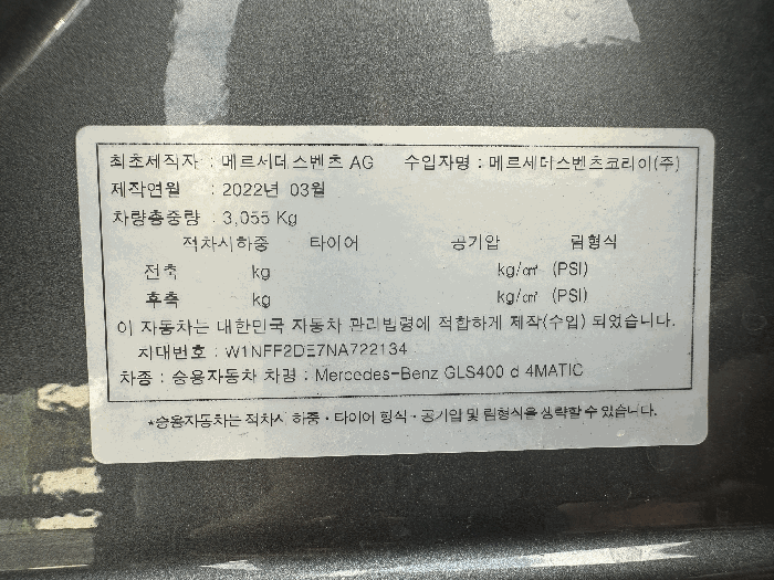 | 제조사 | 벤츠 | 차량명 | Mercedes-Benz GLS400 d 4MATIC |