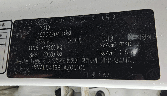 | 차대번호 | KNALD416BLA205105 | ||