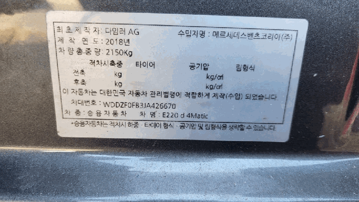 | 차대번호 | WDDZF0FB3JA426670 | ||