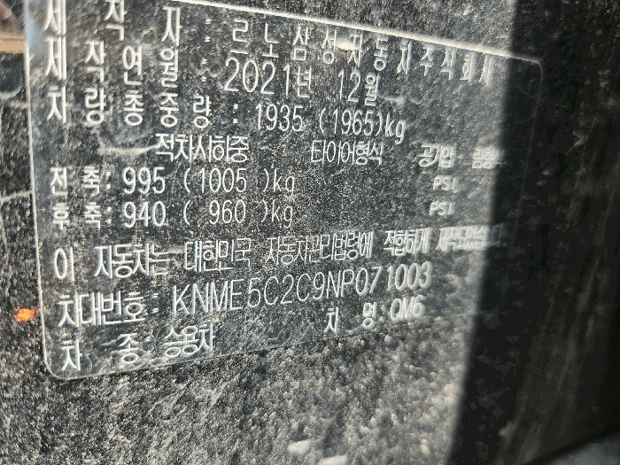 | 차대번호 | KNME5C2C9NP071003 | ||