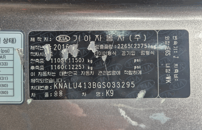 | 차대번호 | KNALU413BGS033295 | ||