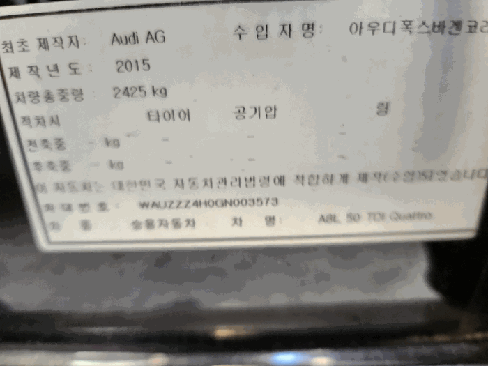 | 차대번호 | WAUZZZ4H0GN003573 | ||