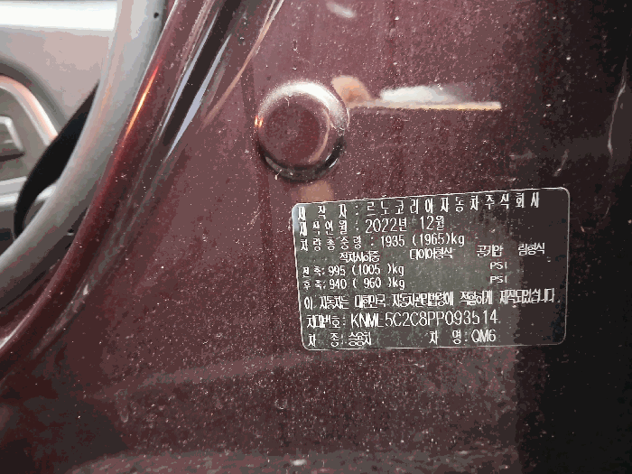 | 차대번호 | KNME5C2C8PP093514 | ||