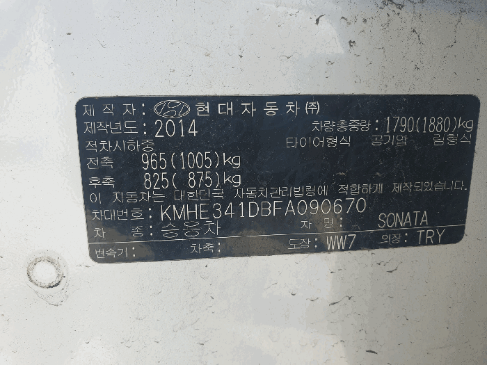 | 차대번호 | KMHE341DBFA090670 | ||