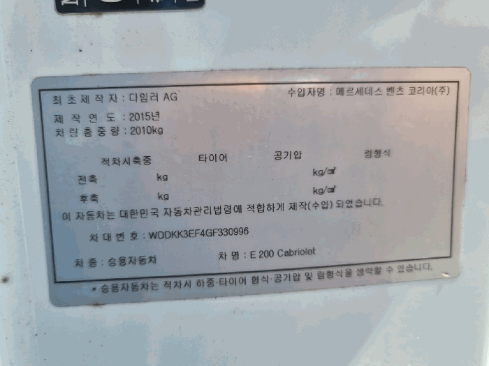 | 차대번호 | WDDKK3EF4GF330996 | ||