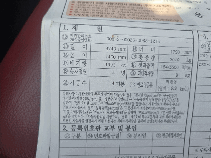 비고1. 2016년식 흰색 휘발유차량임. 계기판상 주행거리는 64,233km이며, 자동차등록원부상 검사유효기간은 2023.12.04~2025.12.03.임.