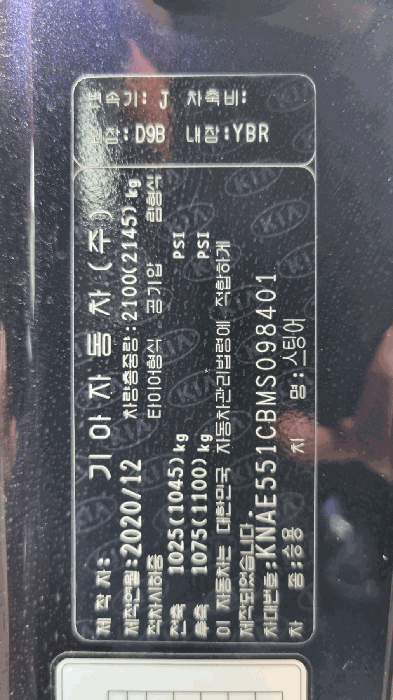 | 차대번호 | KNAE551CBMS098401 | ||