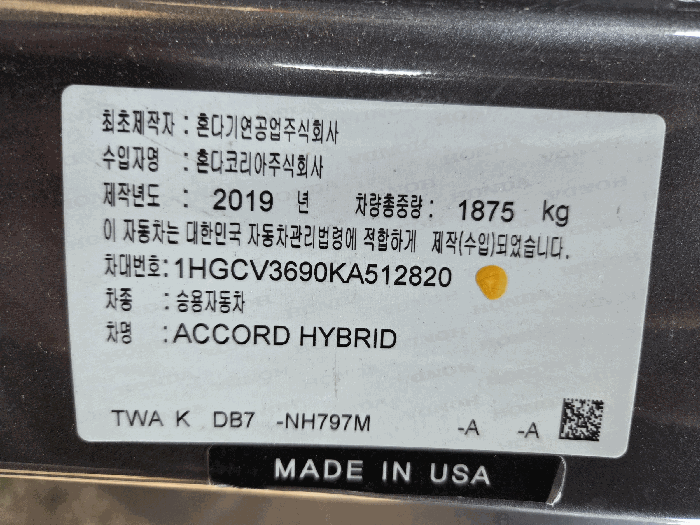 | 제조사 | 기타 | 차량명 | ACCORD HYBRID |