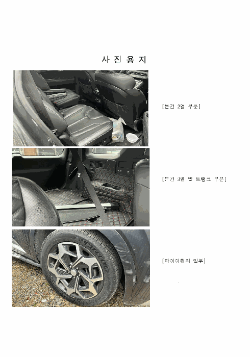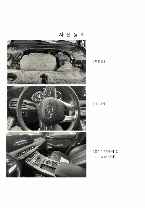 | 비고 | 1. 사용연료가 디젤 차량임 2. 주행거리는 기준시점일 기준으로는 45,429km로 확인되었음. 3. 중고차 사고이력정보 보고서상 내 차 피해 2회 조회됨. | ||