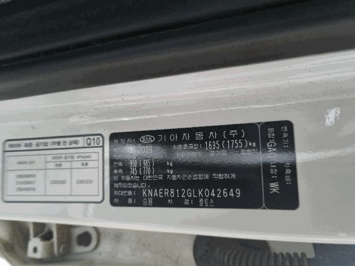 | 차대번호 | KNAER812GLK042649 | ||