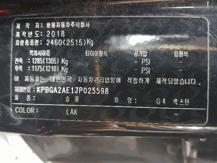 | 차대번호 | KPBGA2AE1JP025598 | ||
