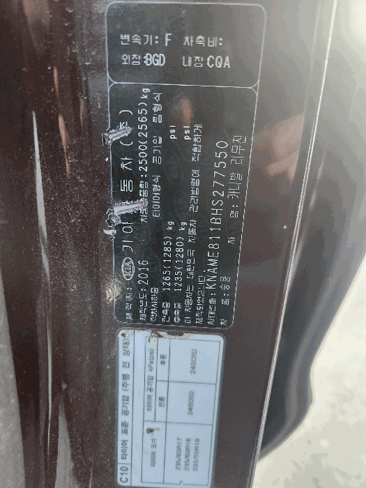 | 차대번호 | KMAME811BHS277550 | ||