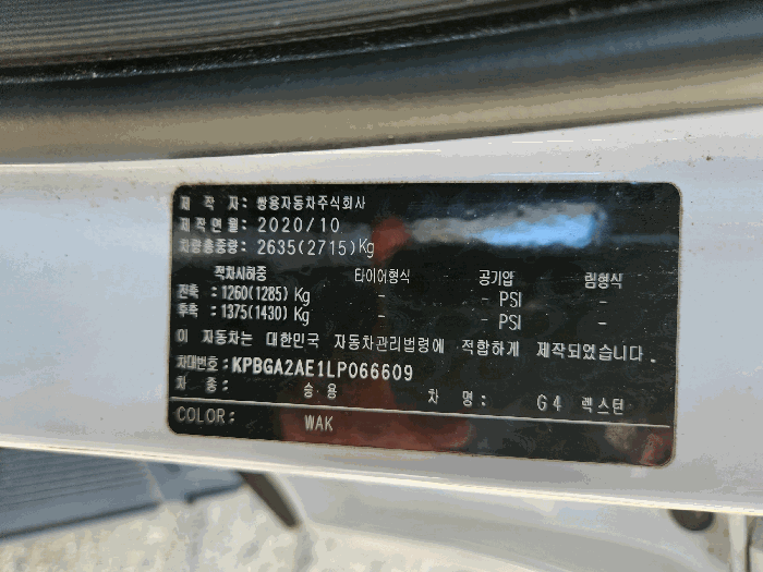 | 차대번호 | KPBGA2AE1LP066609 | ||