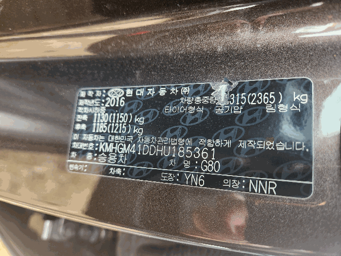 | 차대번호 | KMHGM41DDHU185361 | ||