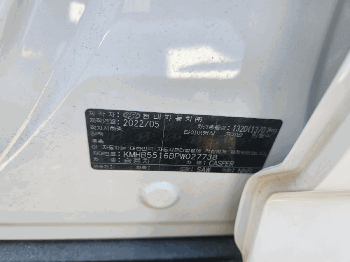 | 제조사 | 현대 | 차량명 | 캐스퍼 (CASPER) |