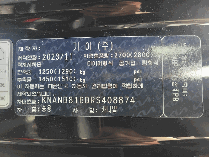 | 차대번호 | KNANB81BBRS408874 | ||