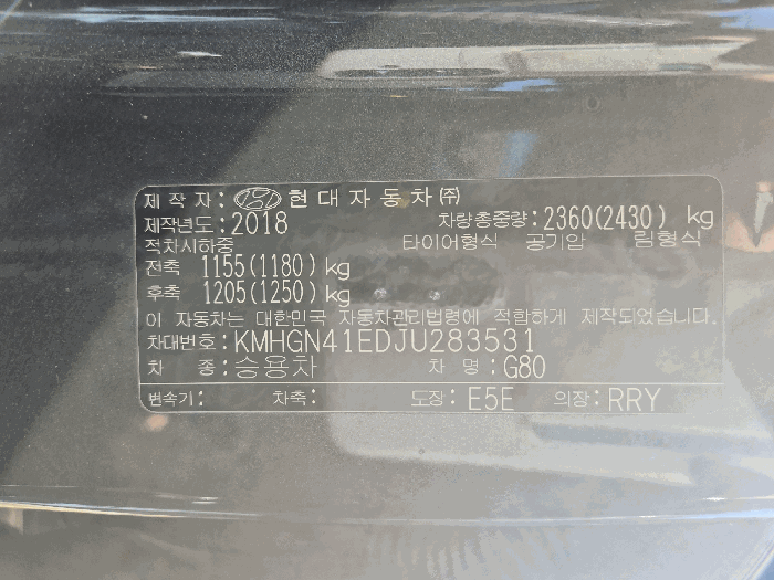 | 제조사 | 제네시스 | 차량명 | G80 |