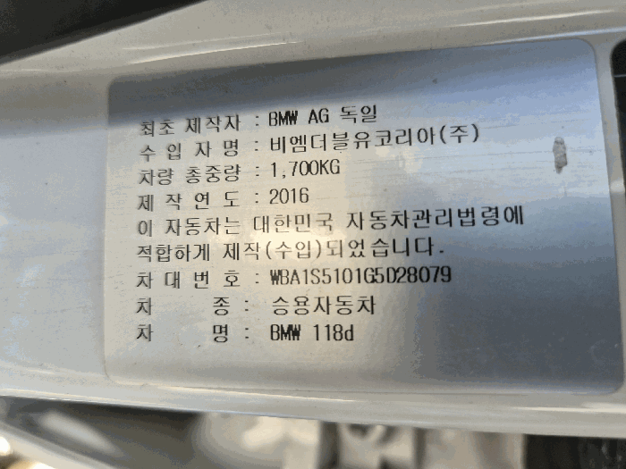 | 차대번호 | WBA1S5101G5D28079 | ||