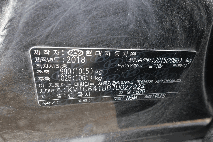 | 제조사 | 제네시스 | 차량명 | G70 |
