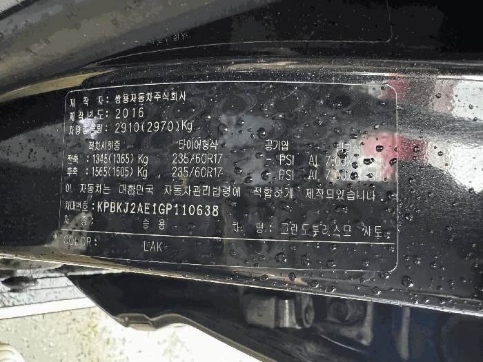 | 차대번호 | KPBKJ2AE1GP110638 | ||