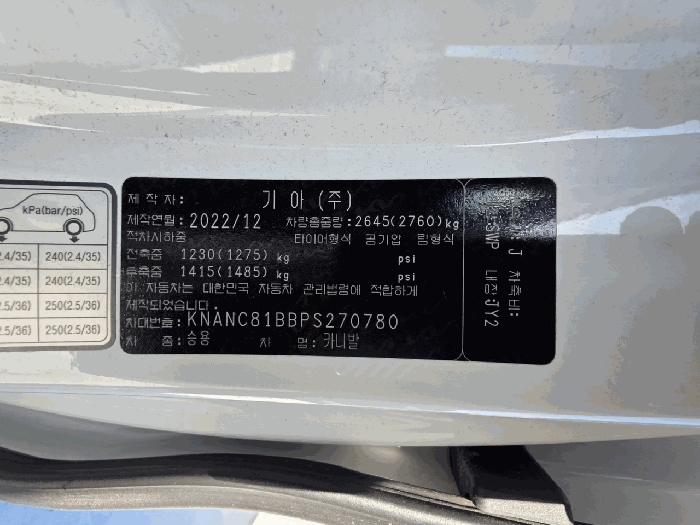 | 차대번호 | KNANC81BBPS270780 | ||