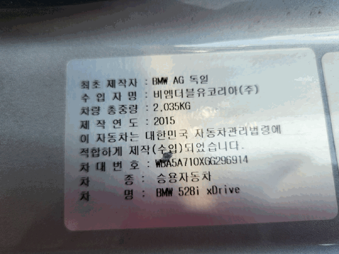 | 차대번호 | WBA5A710XGG296914 | ||