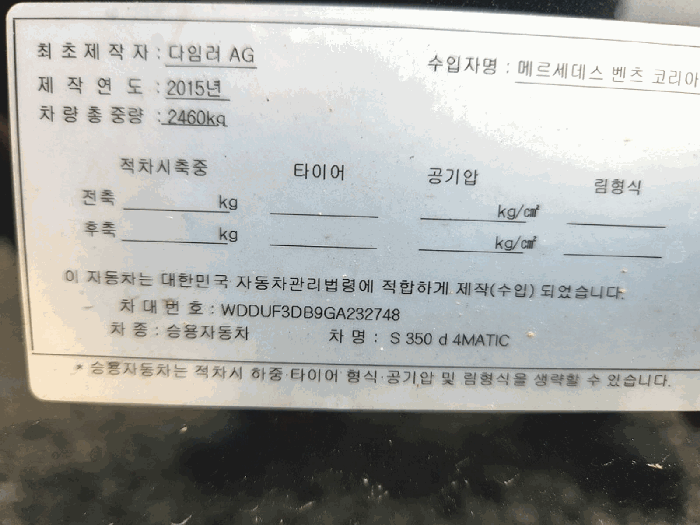 | 제조사 | 기타 | 차량명 | S350 d 4Matic |