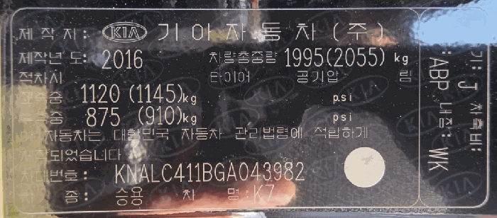 | 제조사 | 기아 | 차량명 | K7 |