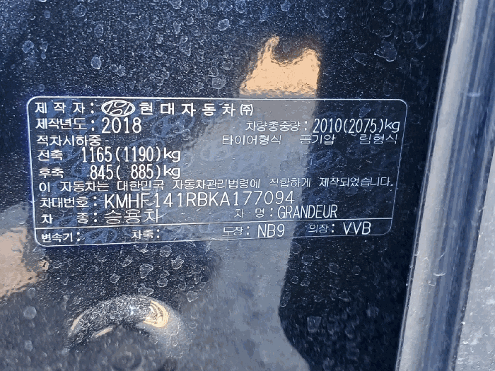 | 차대번호 | KMHF141RBKA177094 | ||