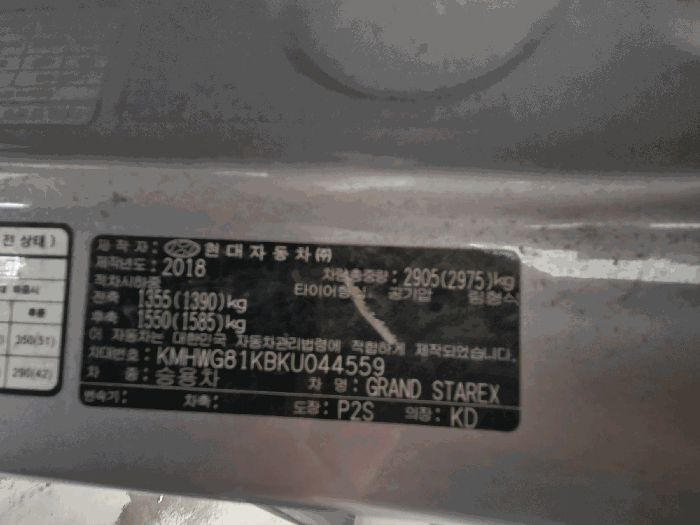 | 제조사 | 현대 | 차량명 | 그랜드 스타렉스(GRAND STAREX) |