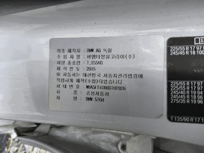 | 차대번호 | WBA5E5108GG102826 | ||