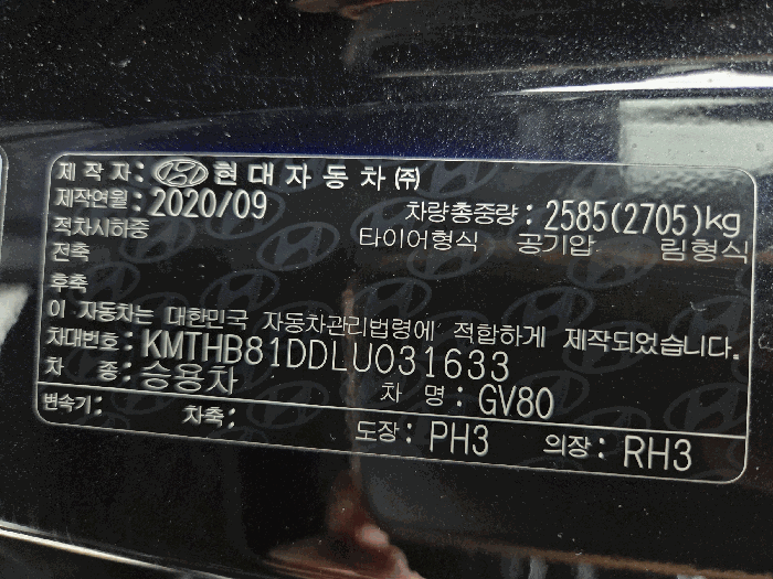 | 제조사 | 제네시스 | 차량명 | GV80 |
