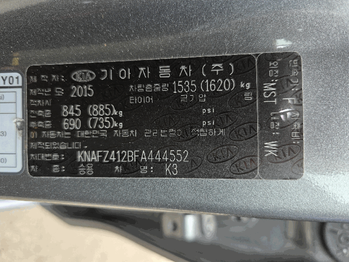 | 차대번호 | KNAFZ412BFA444552 | ||