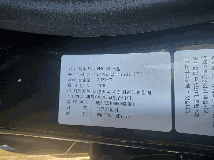 | 제조사 | BMW | 차량명 | BMW 520d xDrive |