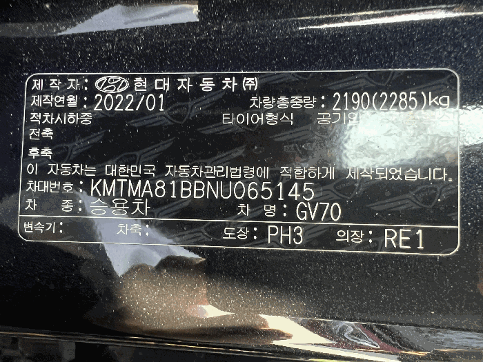 | 제조사 | 제네시스 | 차량명 | GV70 |